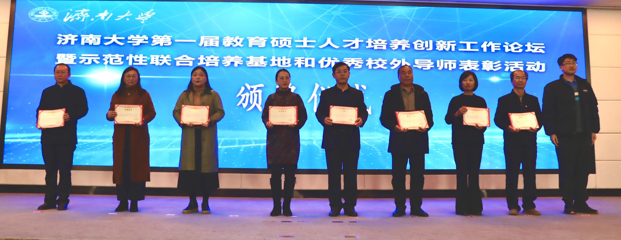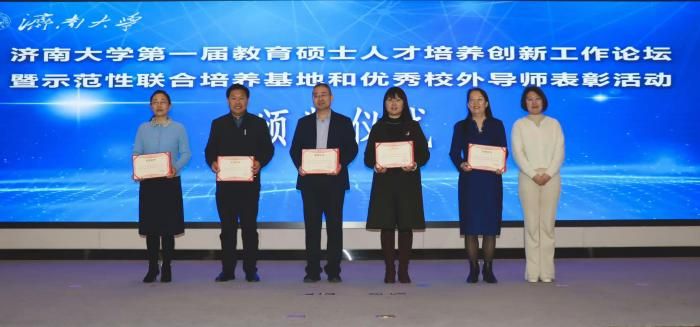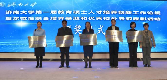 东北师范大学教授凡勇昆、济南大学文学院副教授谷瑞丽、济南市市中区育秀小学老师韩松作“教育硕士教学案例开发与应用”主旨报告,为案例研究指明了方向。济南大学信息科学与工程学院教授杨晓晖和365英国上市公司在线副教授李燕围绕“教育硕士研究能力的培养”,提出可行性建议。示范性联合培养基地负责人代表和优秀校外导师代表结合切身经历,分享了联合培养的心得与经验,引起了在场校内外导师的共鸣。期间,与会领导为我校教育硕士示范性联合培养基地和优秀校外导师颁奖。