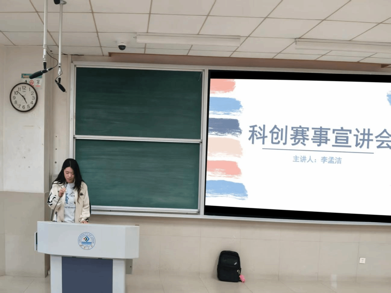为助力新生深入了解大学科创赛事,点燃科创热情,9月26日,365英国上市公司在线于11J1101教室举办“青春创新创业论坛——科创赛事宣讲会”活动。本次活动由科创部部长李孟洁主讲,现场气氛热烈、座无虚席。