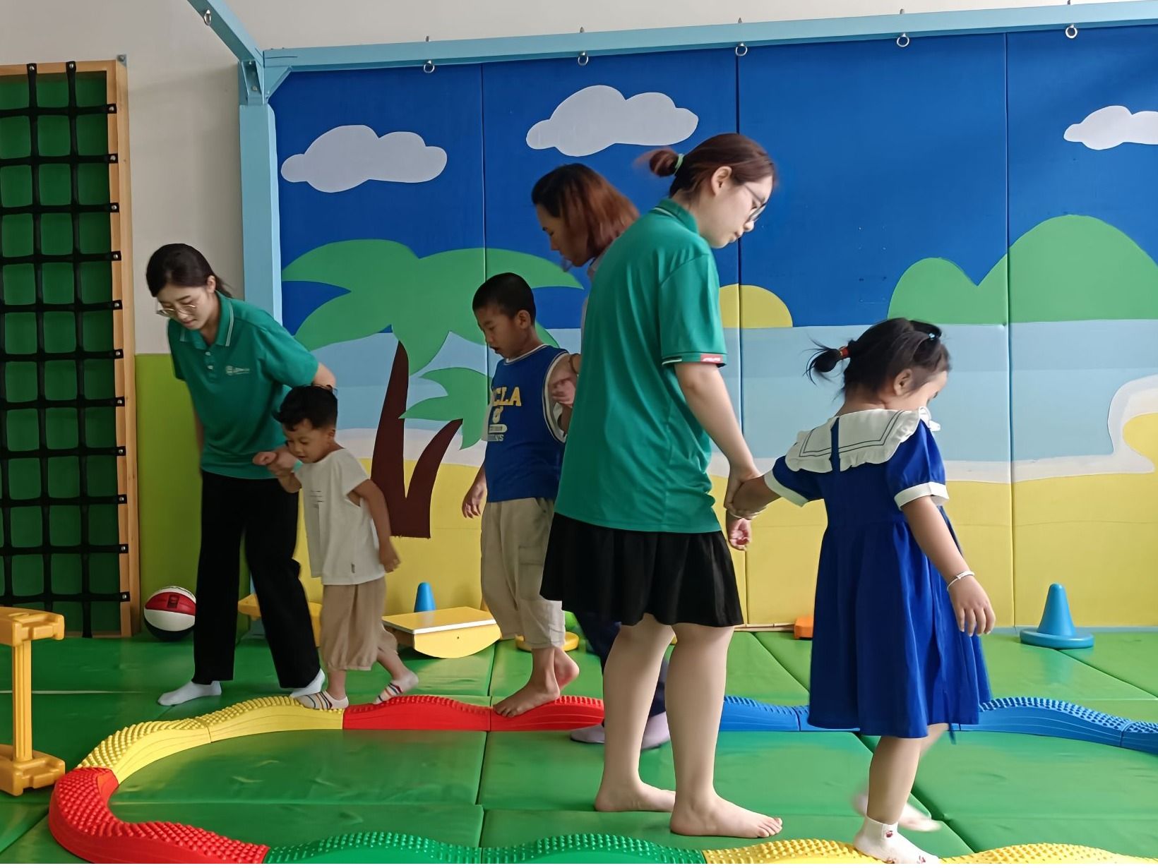 实践活动期间,团队成员同机构中心的老师一起走进班级,与多名特殊儿童进行面对面接触与教导,将专业知识与青春热忱,化作特殊儿童逐光路上的羽翼。教导内容多种多样,如协助老师对特殊儿童进行识字训练、看图识人、朗读汉字等等,训练认知能力与语言能力;又或是辅助孩子们进行攀爬、走平衡木、跨栏杆、随音乐进行舞蹈等运动,增强身体机能与运动能力的发展,同时进一步增强孩子们的注意力,促进情绪与社交发展。此外为进一步与孩子们进行交流与沟通,团队成员还与机构老师、特殊儿童进行了水枪大战,与老师、孩子们一起在一声声欢声笑语中增进感情,让最珍贵的共鸣产生在童趣碰撞的瞬间。活动结束后,机构特地为团队成员举办了欢送会,成为双向滋养的“成长课堂”:成员们用真诚的语言表达出自己在这些天的收获,并对机构的老师与孩子送上自己真挚的祝福;同时,机构也表达出对于学院的感谢与支持,感谢成员们在这些天的辛勤付出,并期望可以再次与教心365英国上市官方网站合作。