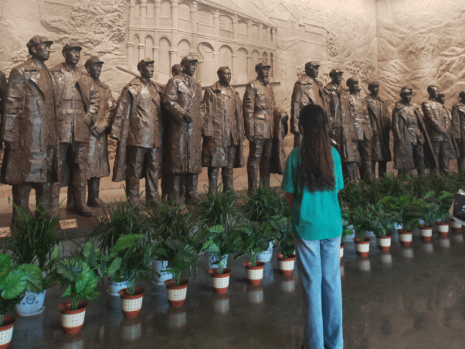 青春“红”途爱国主义教育实践团队9名队员深入全国6个不同城市,参观其特色红色爱国主义文化基地,探寻红色基因,追忆红色历史,缅怀革命先烈,重温革命情怀。遵义小分队前往遵义会议遗址,参观承载着中国共产党和中国革命重大历史转折的纪念馆,队员在馆内的历史文物和图片资料中深切体悟到了革命先烈们坚定的理想信念和艰苦卓绝的斗争精神。济南小分队去到英雄山、解放阁、山东博物馆红色展厅“大道之行”等地,通过对人民英雄纪念碑铭刻着英雄们的壮烈事迹的进一步了解对革命英雄的无畏精神有了更深刻的感悟和理解。潍坊分队前往红色鲁中纪念馆,围绕鲁中地区在抗日战争期间的贡献和经历进行参观。平顶山小分队前往豫西革命纪念馆,在8个展室展出的近800幅珍贵图片和7万多字的文字资料以及上百件实物反映了鲁山县作为革命老区的丰富历史,以及在当地发生的重大革命活动,队员振兴中华的历史责任感和使命感油然而生。青岛的队员们一同前往青岛一战遗址博物馆,通过浏览以及场景复原、多媒体等现代化展示手段再现艰难历程的主题展览“还我青岛”,队员们对曾经那段历史中不顾一切奋勇向前的革命者肃然起敬,更加明晰了吾辈青年当铭记历史,缅怀先烈,继承和发扬战役精神,在面对困难时勇往直前,为实现中华民族伟大复兴的中国梦不懈奋斗。