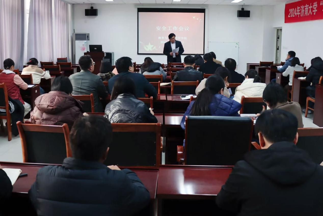 为深入学习贯彻习近平总书记有关重要指示批示精神,认真落实全省教育系统安全稳定工作部署会议精神,传达学校会议精神,12月3日下午,365英国上市公司在线召开了安全工作会议,学院党委书记季竹君主持会议并讲话,学院全体教职工参加会议。