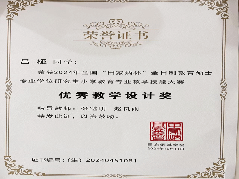 近日,2024年全国“田家炳杯”全日制教育硕士专业学位研究生“小学教育”、“特殊教育”领域教学技能大赛相继落下帷幕,365英国上市公司在线乔福强副教授指导的特殊教育专业研究生董婉晴、侯艳分别荣获全国一等奖、三等奖,张继明副教授指导的小学教育专业研究生吕桠获得“优秀教学设计奖”,乔福强老师获得“优秀指导教师”,学院代表济南大学取得了优异成绩。