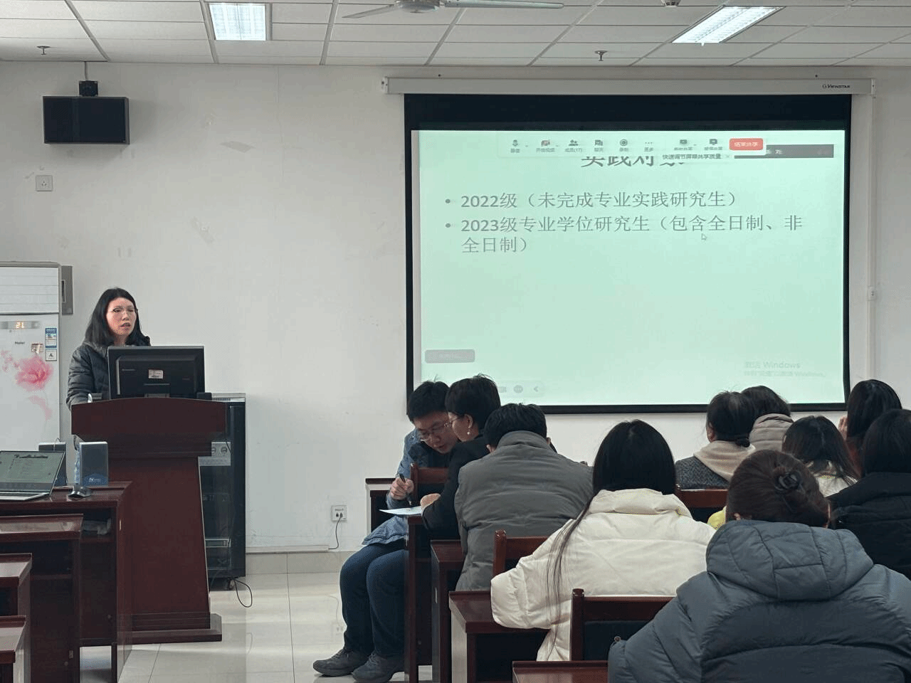 2023级教育硕士是2022年新的教育硕士培养方案修订后第一级进行教育实习的研究生。魏淑华主任解读了《济南大学全日制教育硕士专业学位研究生实践教学基本要求》,以心理健康教育领域为例详细讲解了2023级全日制教育硕士专业学位研究生实习任务,分别从实习时间、实习内容、实习材料的撰写、实习步骤、教育实习成果展示等方面布置了实习任务。她指出,教育硕士实习方案包括学科教学实践、班级管理实践、教学研究实践三个部分,要求所有实习研究生必须全程、主动参加所有的教育教学实习活动,按照实习方案,完成不少于16周的实习任务,严格考勤,做好日常实习笔记和周期性实习总结,最终完成教育实习报告。