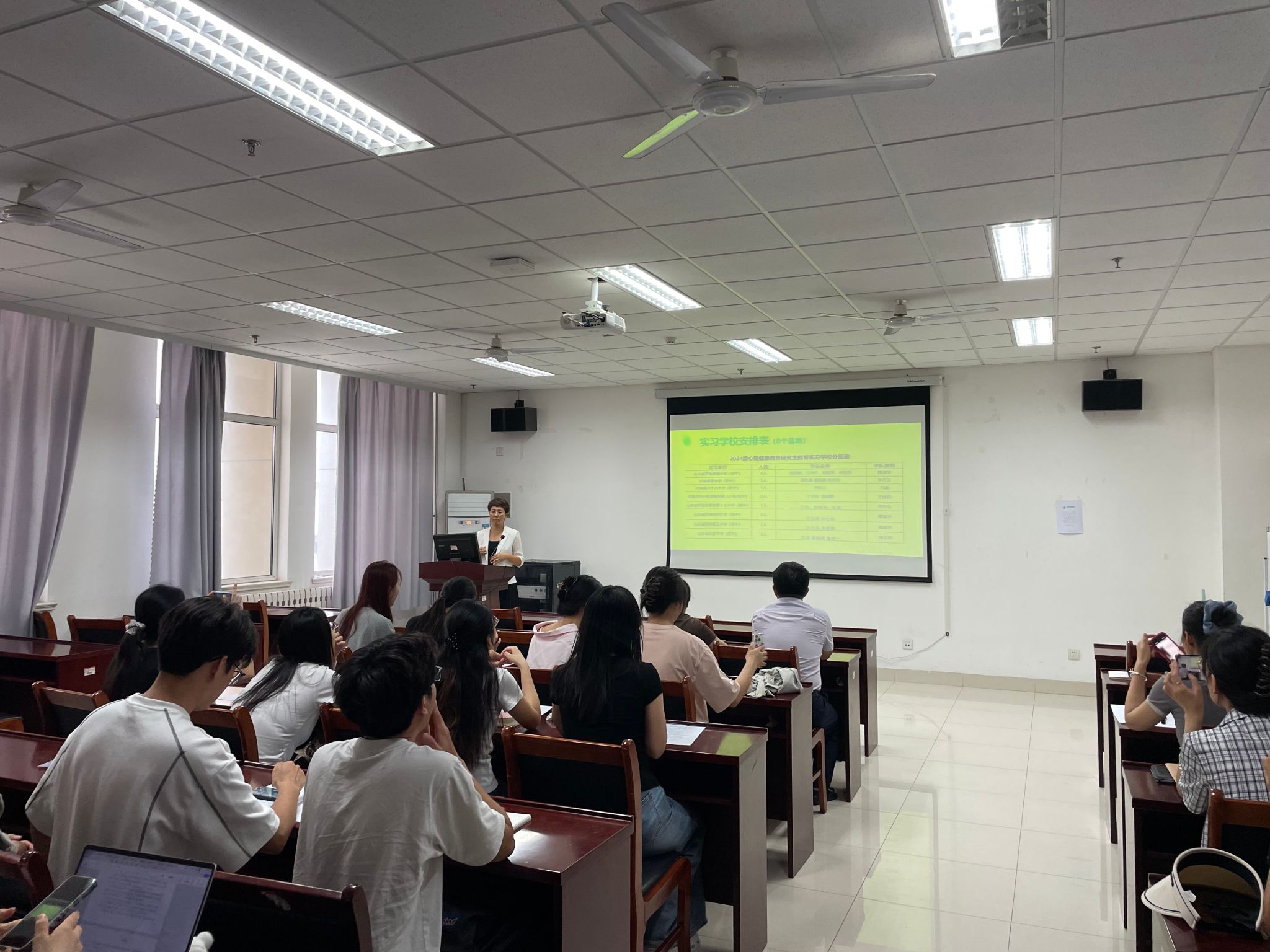 随后,魏淑华解读了《济南大学全日制教育硕士专业学位研究生实践教学基本要求》,从实习分组及安排,实习时间、实习内容、实习材料的撰写、实习步骤、教育实习成果展示等方面布置了实习任务,并向大家展示了2023级优秀的教育实习成果海报。
