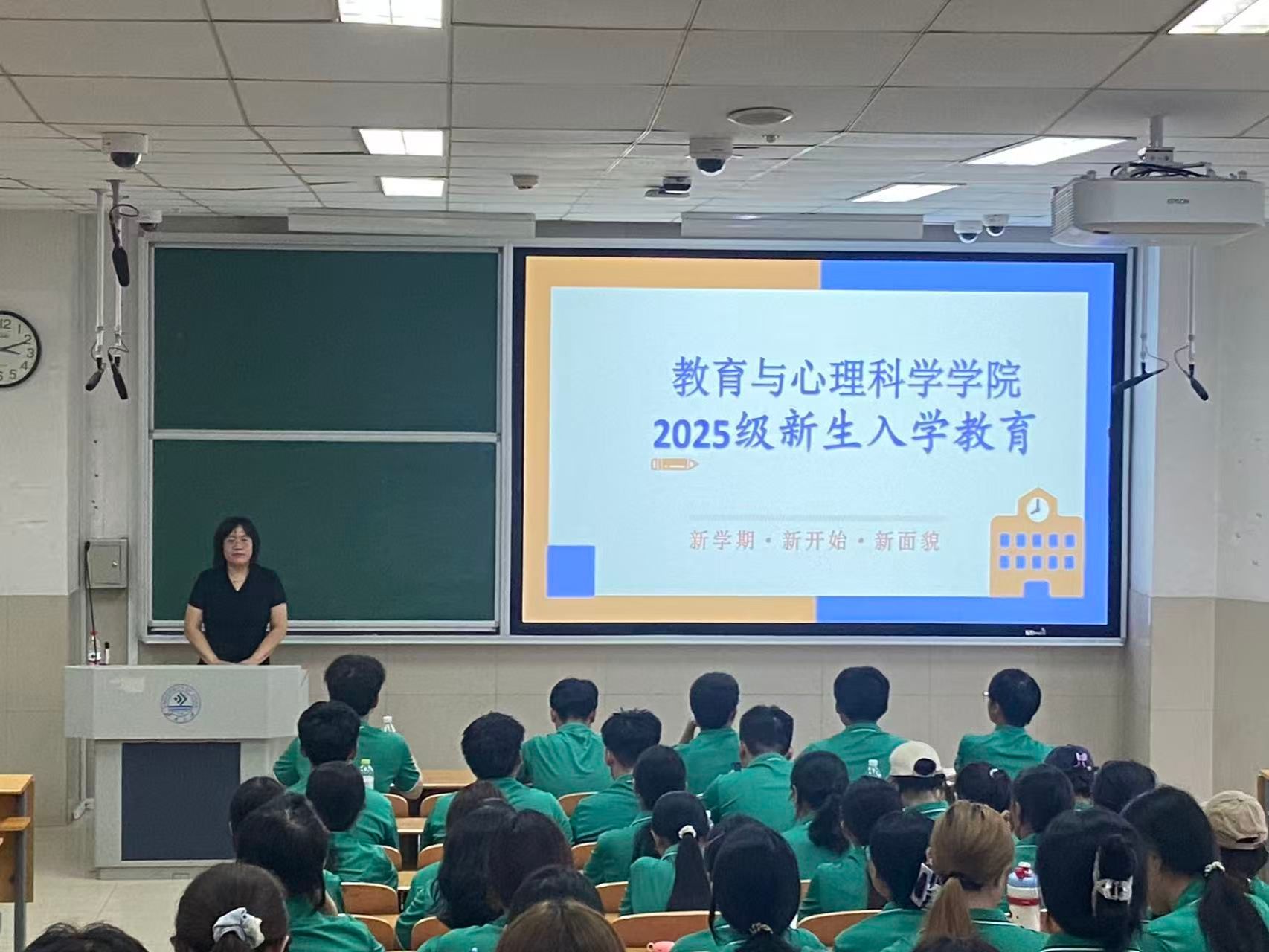 入学教育作为大学阶段的“第一课”,学院高度重视,领导班子提前谋划。9月16日,学院组织全体新生于11J3201共同观看思政课堂。随后,学院院长陈功香围绕学院发展历程、学科排名及师资力量展开详细介绍,让新生对学院实力有了清晰认知;学院副院长李开云以“新生未来,未来可期——从大脑认识学习”为主题,生动阐述了有效学习的方法与意义,帮助新生摆脱盲目学习状态。