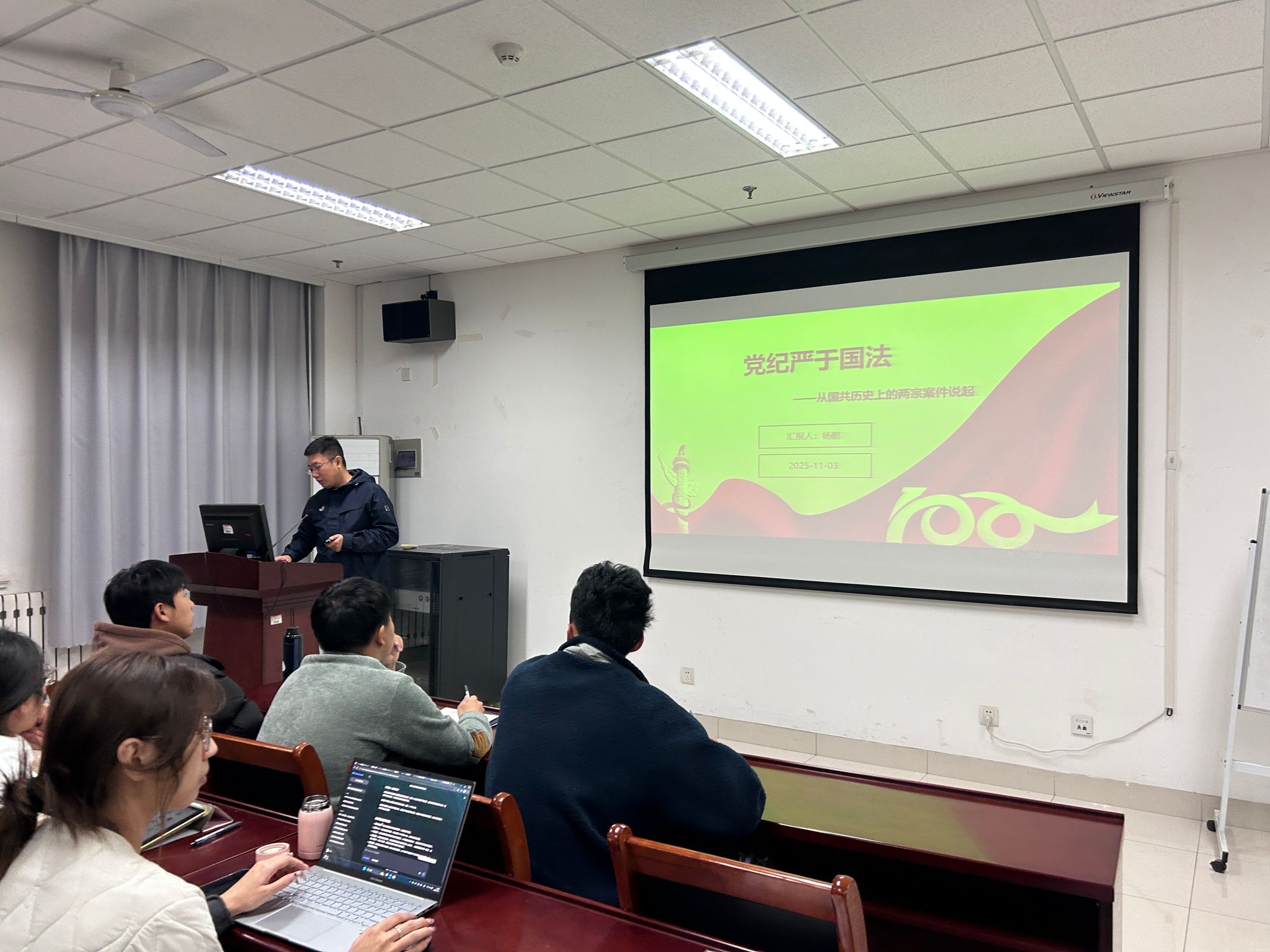 杨鹏以“党纪严于国法的理论逻辑与实践要求”为重点,阐释党的纪律建设历程与刚性约束力。他结合《中国共产党纪律处分条例》,强调党纪先行于国法的政治逻辑,要求学员将遵守党纪作为政治生命的根本保障,始终把纪律规矩挺在前面,自觉用党纪规范言行、筑牢思想防线。