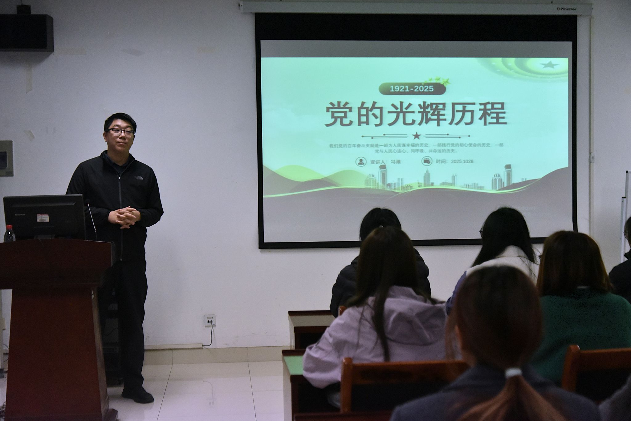 冯潍以“党的光辉历程”为题,回顾了中国共产党的百年奋斗史,通过讲述党在艰难时期的淬炼与辉煌时刻的成就,深刻阐释了没有共产党就没有新中国的历史必然性,引导学员从历史纵深中感悟党的初心使命,新时代青年要以党的创新理论武装头脑,在学思践悟中坚定理想信念,在奋发有为中践行初心使命。