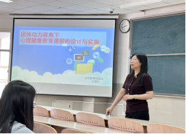 许老师介绍了开设心理健康教育课程的重要意义,强调心理健康教育课程是学校实施心理健康教育的主要途径。她从团体动力学的视角,讲解了心理健康教育课的“暖身-转换-工作-结束”四阶段结构,通过真实的课堂案例,引发同学们对于课堂团体动力不足原因的思考,并引导同学们将团体动力理论的应用扩展到了班级建设、团队发展和组织管理等领域。在心理健康教育课的设计部分,许老师将设计指导思想凝练为——从学生中来,到学生中去,认为心理课要始终寻找和融入学生的生活,心理教师在教学中最重要的就是要做到“眼里有人”。