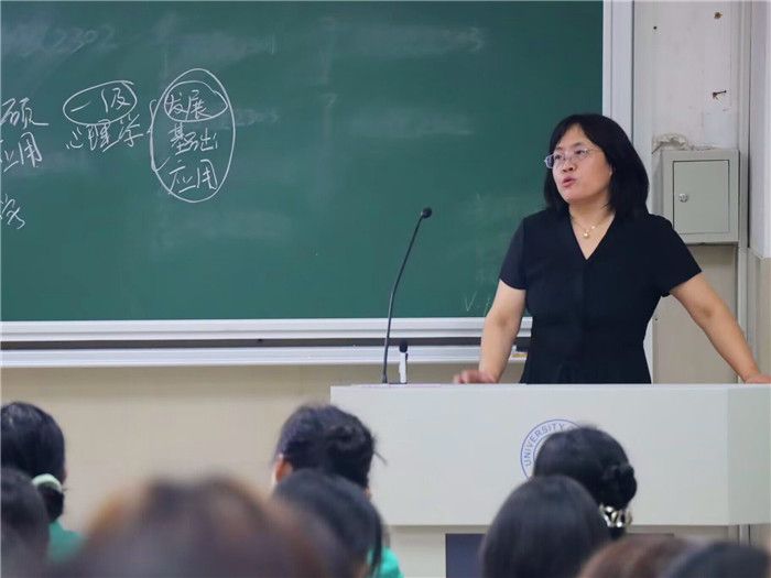 陈功香院长以“为什么来大学“为主题,对学院应用心理学和特殊教育两学科专业的发展状况、专业排名以及大学生如何做好未来规划作了详细阐述。她指出,同学们自己应做好学习规划,学院也将以分配专业导师、本科生参与组会、基础培训、虚拟实验班、鼓励学生积极参与辅修专业等多种方式方法支持学生多样化发展。希望同学们选择适合自己的方式方法,学好各科专业知识,实现人生赋能与提升,用己所学服务于社会主义现代化建设。
