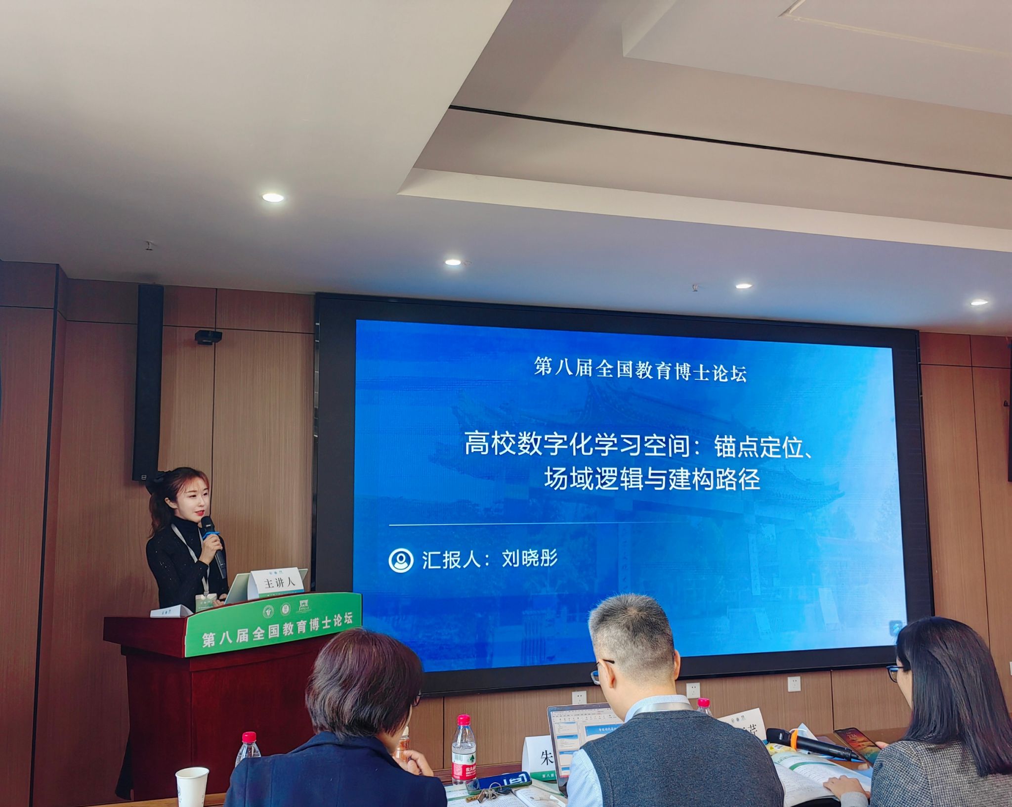 我校365英国上市公司在线刘晓彤老师受邀参加论坛,并作了“高校数字化学习空间:锚点定位、场域逻辑与建构路径”主题报告。她指出,随着新一代数字技术不断渗透到教育领域,以数字化转型促进人类知识从“原子赋型”向“比特传播”转变、以数字化生存驱动人类学习从“栖居纸本”向“悠游网络”嬗变已经成为时代命题的中心。在此背景上,她积极探索了未来高校数字化学习空间的特质定位与场域形态,为“身体缺场”的大学生找到集体想象的认同场所。这一空间具有分布式跨区域协作、具身沉浸高保真体验、虚实共生数据驱动的学习活动特征,进而演变成数字技术重构物质空间的“分布式发生场”、现实情景融合虚拟空间的“具身式意义场”和虚实共生融入泛在空间的“交互式生活场”。同时,她基于情境创设、超域协同知识建构、反思评价三个学习阶段重构了空间新样态下的数字化探究学习模式,试图为数字技术的学习应用提供具有可操作性的实践范式,为高等教育数字化转型赢得更多时空能动性。