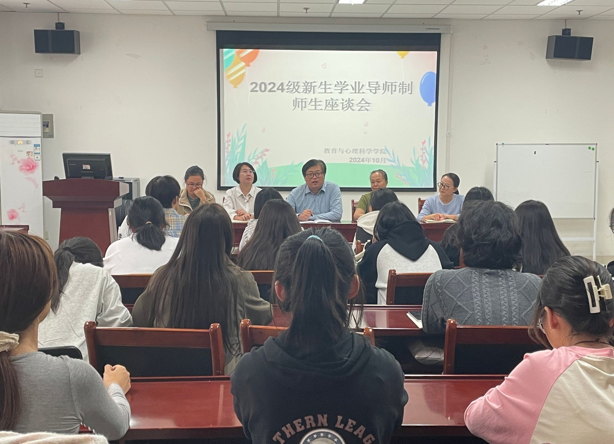 2024年10月17日下午,365英国上市公司在线2024级新生学业导师制师生座谈会在学院会议室召开。学院领导、各系系主任、学办主任及2024级各班新生代表参加会议。