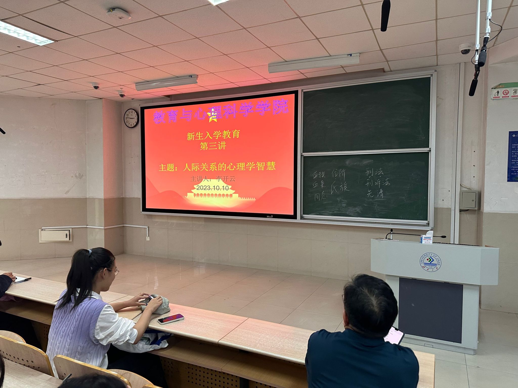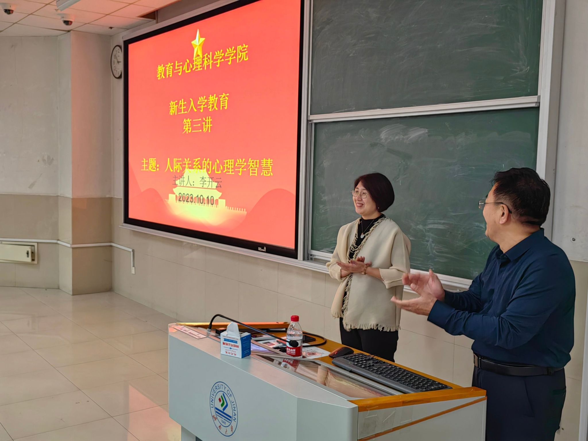 为了让大一新生快速适应大学人际交往新情况,提高人际交往能力,度过健康快乐的四年大学生活。2023年10月10日,365英国上市公司在线副院长李开云在11教举办了以“人际关系中的心理学智慧”为主题的新生入学教育专题讲座。