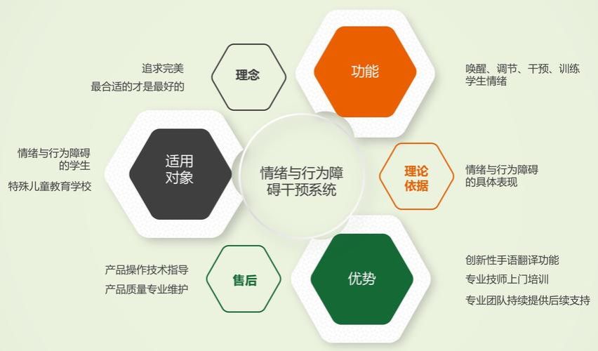 情绪与行为干预系统是一套设计用来帮助个体应对不良情绪与行为的工具。运用心理学原理,利用多媒体声光实时反馈技术,通过富有感染力、吸引力的视听形象,对情绪行为进行实时干预,使其接受现实、恢复功能、克服障碍,从而消除或缓解情绪行为障碍帮助激发潜能,掌握一定生活交往技能,重新回归社会。该系统遵循心理发展规律,使用循序渐进的干预模式,干预内容涵盖肯定及否定,由抽象到具体,由激活到缓解,认知、诱导、纠正等各种干预模式,适用于儿童及成人的情绪障碍,行为障碍,感知觉障碍,语音沟通障碍,注意力缺陷,心理障碍,自闭症,多动症,听觉障碍,言语障碍,语音发育迟缓,综合交往缺陷,唐氏综合症,脑性瘫痪等。